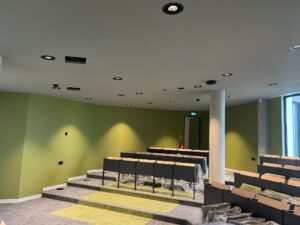 Voor de muzieklokalen op de begane grond golden uiteraard strenge akoestische eisen. Voor de opbouw van de wanden heeft Gyproc Nederland advies uitgebracht aan Janse Afbouw. Accountmanager Mark Verhoeven van de fabrikant uit Vianen legt uit: “Wij hebben al in een vroeg stadium advies afgegeven over de opbouw van de Gyproc wanden. Dit is vastgelegd in een Gyproc Projectdetailboek waardoor alle partijen op de hoogte zijn van de eigenschappen van de wanden. In het voortraject hebben we regelmatig contact gehad met Janse Afbouw en tijdens de uitvoering hebben wij in samenspraak met het afbouwbedrijf uit Hedel diverse keren het werk geïnspecteerd.”