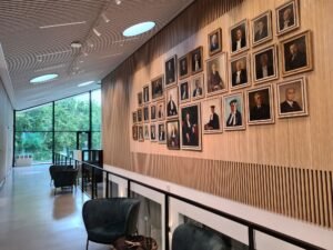 Bij de entree poseren een aantal promovendi voor een fotograaf. Links van de ingang valt het oog direct op een wand vol schilderijen met afbeeldingen van voormalig rectoren magnifici van de universiteit in Wageningen. Het geeft een van de functies aan van het nieuwe gebouw Omnia, vertelt manager Chris van Kreij. “Omnia neemt alle functies over die voorheen in de Aula in Wageningen plaatsvonden, zoals alle promoties en inauguraties. De grote en kleine zaal van Omnia zijn hiervoor ingericht met een academische uitstraling.”