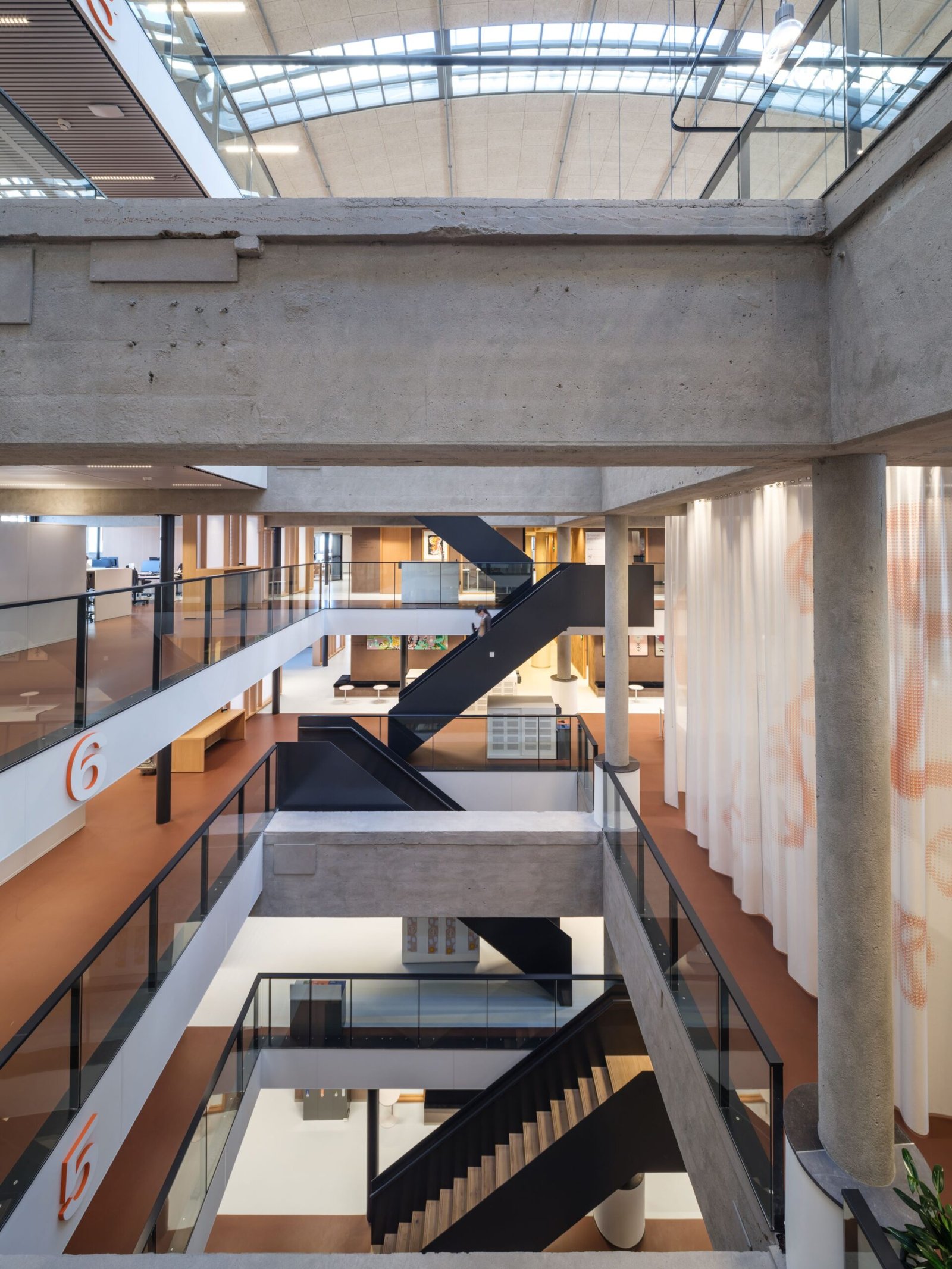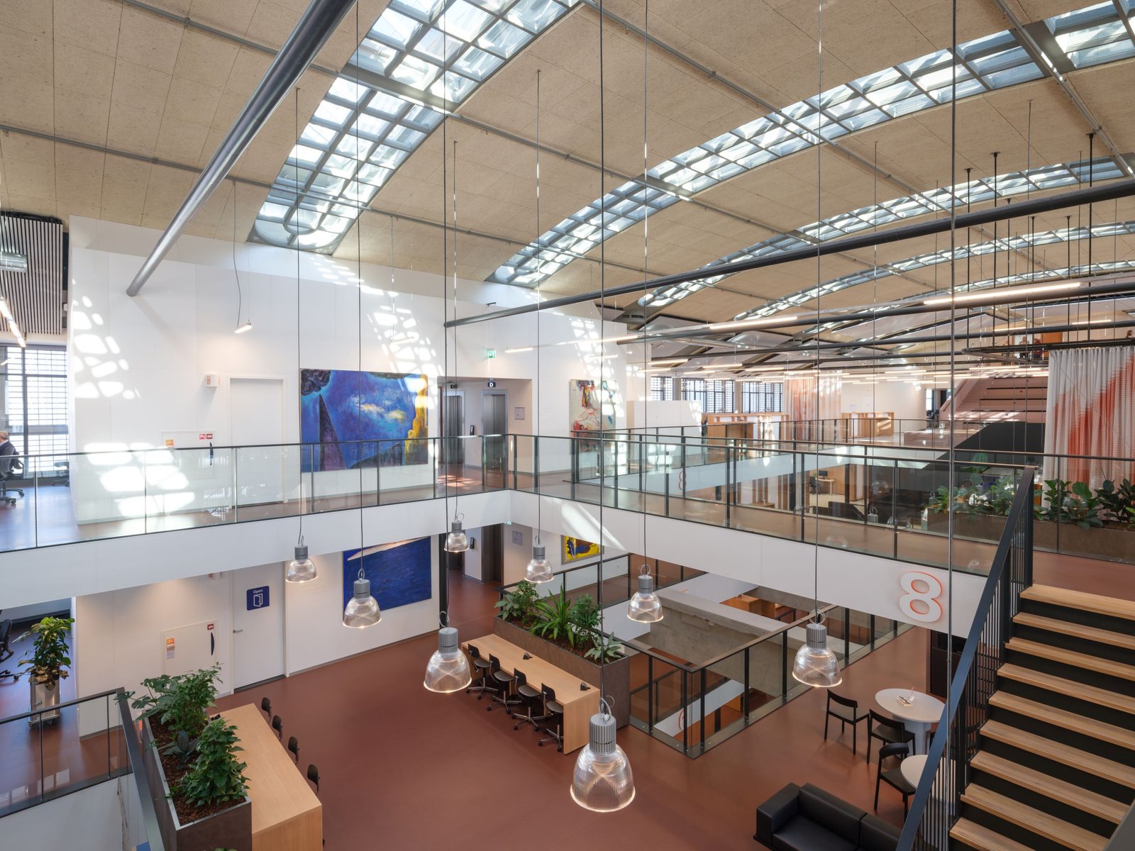 Vanwege de monumentale status van het Stationspostgebouw was het niet mogelijk om grote bouwkundige aanpassingen te doen. Hiermee moest dus rekening worden gehouden bij het bedenken van een oplossing voor meer lichtinval. Die werd gevonden in het aanpassen van de gevel en door het aanbrengen van vides. Om de vides te creëren zijn de betonnen vloeren in het midden open gesneden. Vooral de onderste verdiepingen profiteren hierdoor van meer daglichttoetreding. Deze vides verspringen. Het resultaat hiervan is een samenspel tussen enkelhoge en dubbelhoge verdiepingen, soms breed, op andere plekken juist smal. Het heeft geleid tot een indrukwekkend atrium dat het gebouw als het ware opent. De blik wordt vanzelf naar boven getrokken, naar het van daklichten voorziene rond lopende dak.