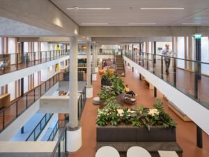 Samenwerking, flexibel gebruik en het welzijn van medewerkers staan centraal bij de hybride manier van werken die PostNL voor ogen had bij de transformatie van het monumentale Stationspostgebouw tot nieuw hoofdkantoor. Het resultaat is een modern, duurzaam gebouw met maximale daglichttoetreding, bijvoorbeeld door het aanbrengen van vides in het gebouw. Aan de akoestische eisen wordt onder andere voldaan door de videranden met akoestische wandpanelen te bekleden.